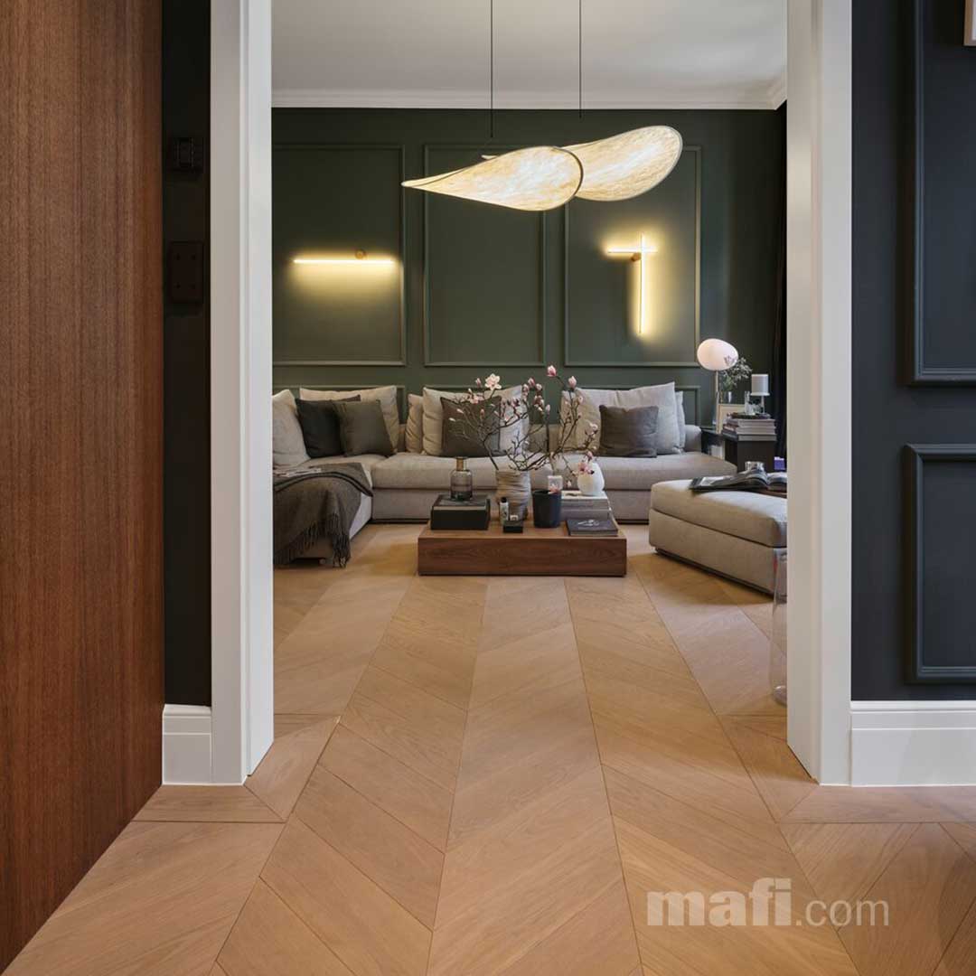 Početna / Prodavnica / Parket / Hrastov parket / Mafi parket hrast 16-19mm clear chevron white oil